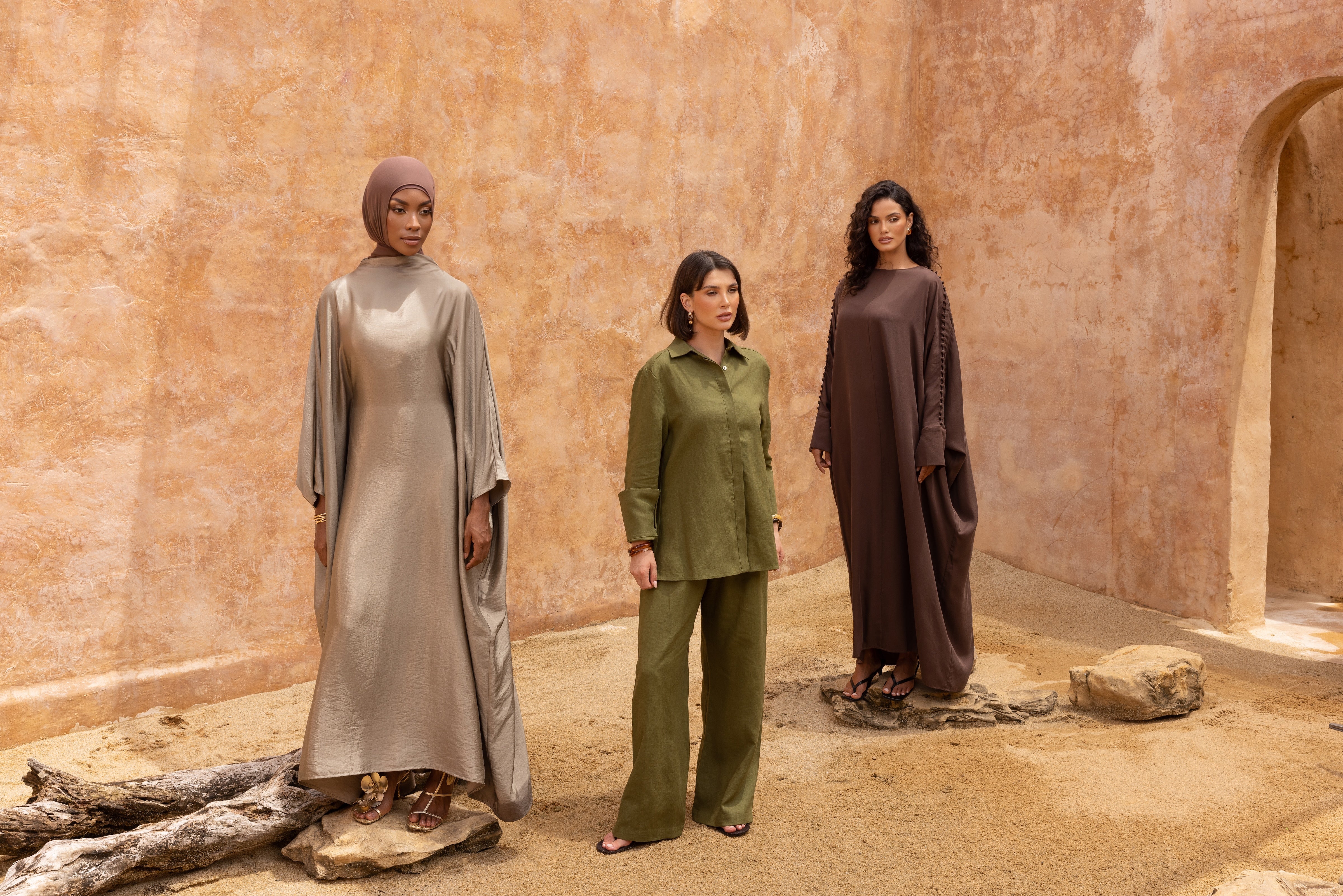 Noor Batwing Open Abaya - Cedar