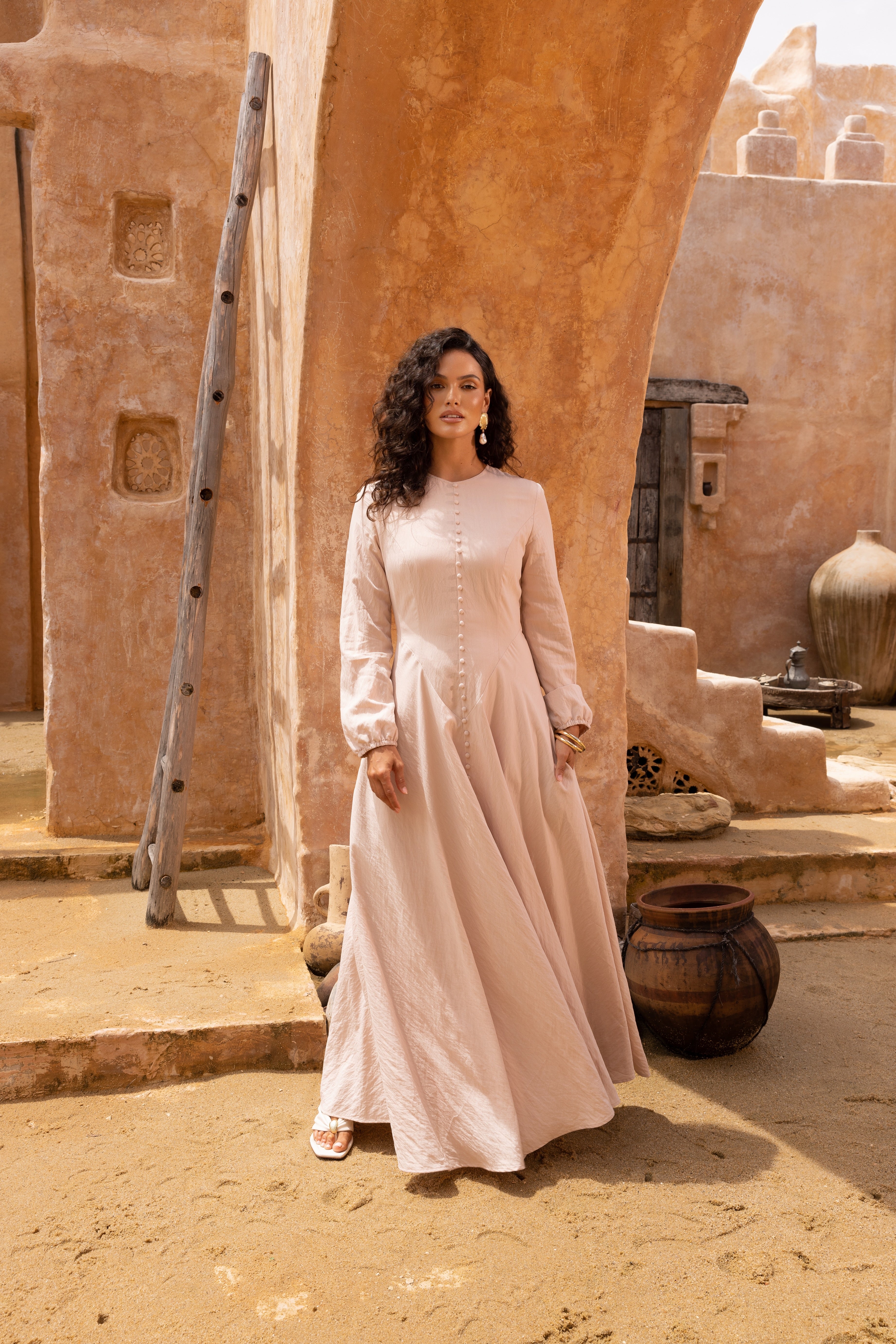 Crinkle Batwing Abaya - Linseed